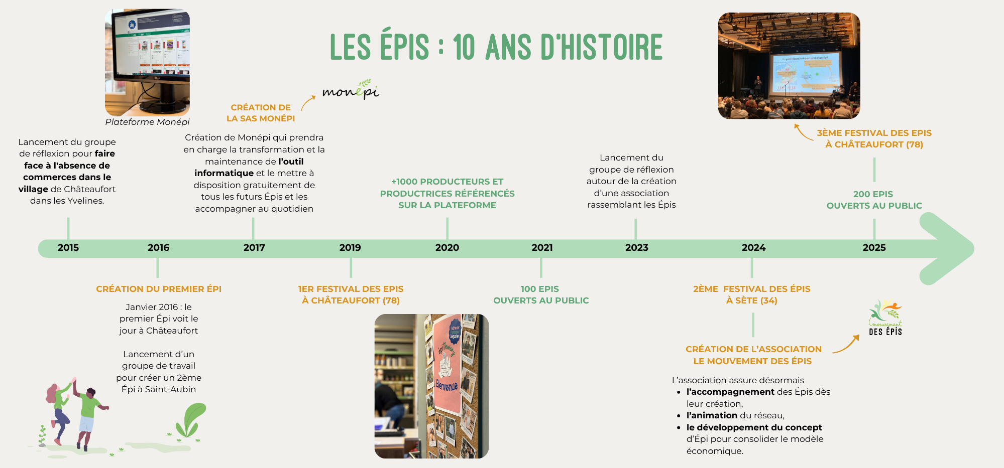 Aujourd’hui, Monépi s’occupe du développement de la plateforme Monépi, en s’appuyant sur les retours des Épis. Le Mouvement des Épis travaille au rayonnement du modèle, en représentant le réseau des Épis et en accompagnant les projets d’Épis dès leur naissance.